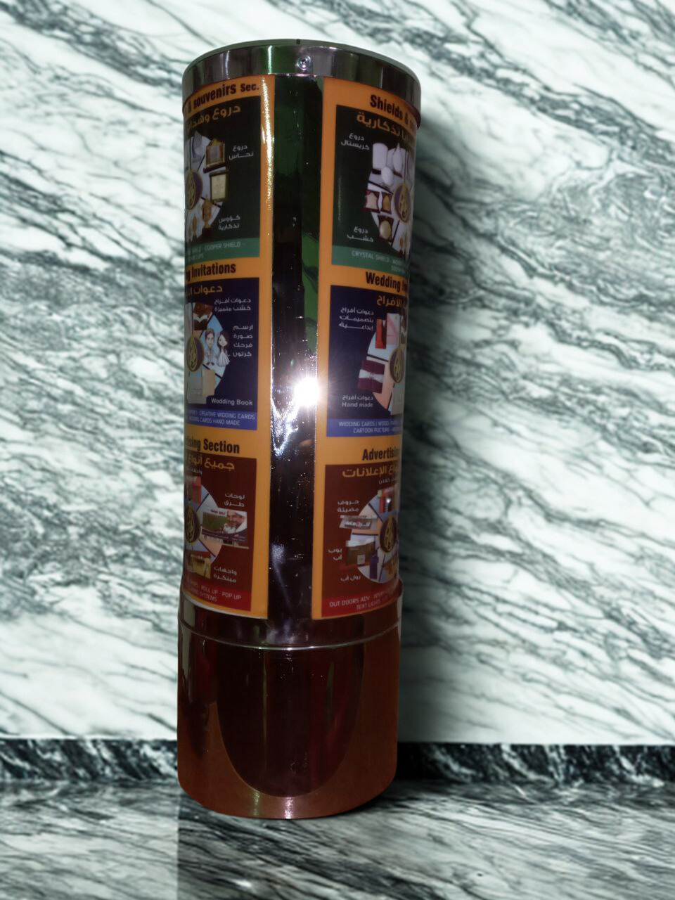 • تعدد الرسائل: يمكنك طباعة تصميم طويل يحتوي على عدة عروض أو خدمات، وتظهر للعميل تباعاً أثناء دوران المحرك.